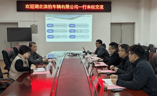 (555000a公海会员中心 通讯员 郑佳) 为加强校企联动,推动产学研深度融合,2025年10月30日下午,湖北洪伯车辆有限公司一行应邀到访555000a公海会员中心,并与公司相关学院教师在工科楼GW203会议室举行座谈交流。湖北洪伯车辆有限公司综合管理部黄业明、人力资源部姜红梅作为企业代表出席。555000a公海会员中心经理周海鹰教授、教师代表郑佳、陈光辉、机械工程学院陈国华教授、熊伟教授共同参加了本次会议。